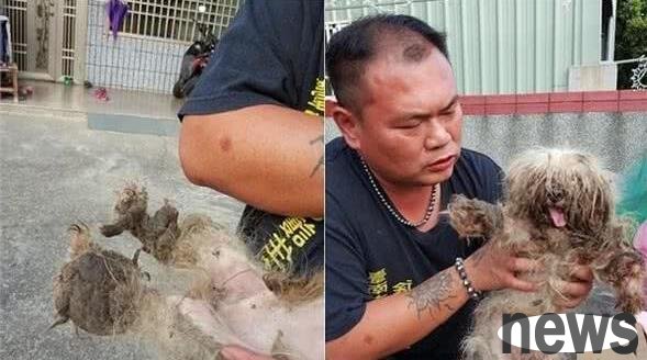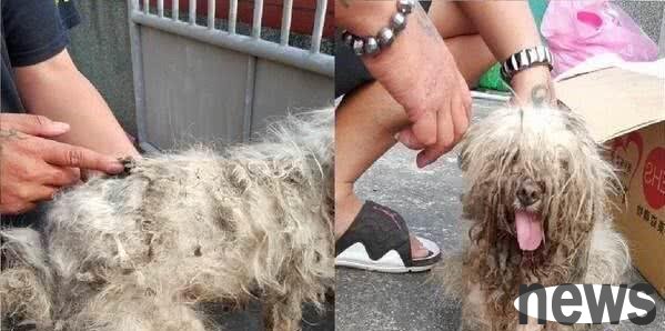 ▲The Maltese dog's hair is tangled and its feces and urine are all tied up on its body.