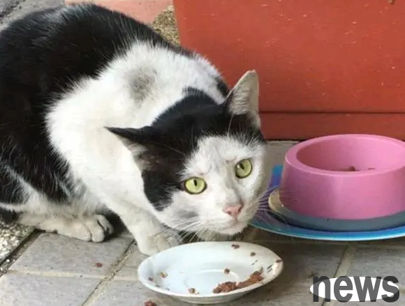 Seeing the pitiful appearance of the cat, Teacher Huang specially bought cans and water and fed the cat.