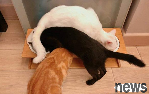 What kind of complicated and love-hate entanglements make them give up eating. A few days ago, a netizen shared a set of hilarious photos on Facebook. In the content, three cat bowls were filled with feed. One bowl for each cat was just right, but when the food was officially served, they turned into "twist rolls" and were intertwined together. The complicated moving lines made people feel sore in their necks.
