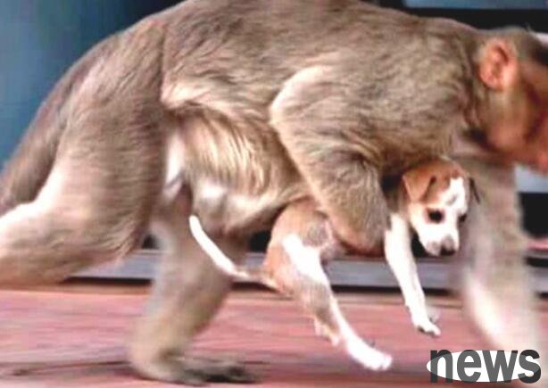 The thing is like this. There is a female monkey on the street, and she is carrying a stray dog in her arms. In fact, if you look from a distance, you will think that it is a female monkey carrying a baby monkey. This female monkey also raised the stray dog as her own child. The female monkey was running around with the dog in her arms, as if looking for food. It was obvious that the female monkey was very tired, but she never learned to let go of the dog, and she still persisted no matter how hard it was.
