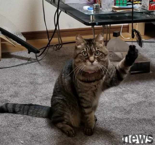 Xiaowen’s cat was holding up a small paw as if to say hello to them. However, if you take a closer look, you can see that this cat is not saying hello willingly, because it looks reluctant and even looks helpless.