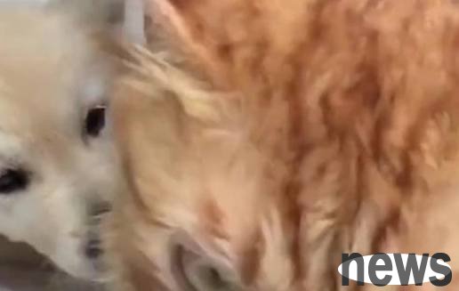As soon as the dogs saw another creature coming in, they felt very magical, and they all pounced on it like detectives. Deliberately push the cat's body with your paws, and lick the cat's hair with your tongue, as if to say: "Hey, this creature's hair is as soft as ours, but the taste is a little different, I want to lick it and taste it." Later, under the enthusiastic offensive of the dogs, the cat felt as if it had taken a bath. All the hair on its body turned into small sharp corners and merged together, and it looked very decadent. The orange cat was surrounded by a nest of little golden retrievers. It was really licked to death~