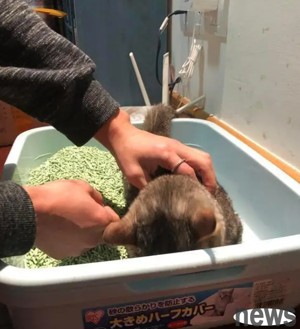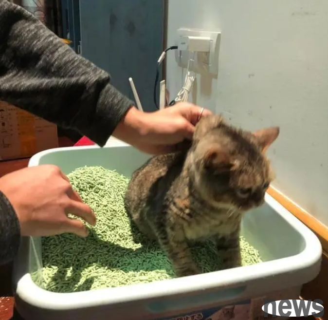 However, when the owner cleaned things up and put in new cat litter, the cat started to make trouble. The owner poured part of the cat litter in, and the cat jumped in and lay motionless in the litter box, refusing to let the owner continue to move. The cat had not finished pouring the cat litter.