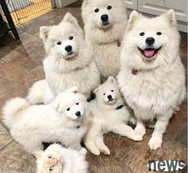 White Cat staged a spy war drama and mixed into the Samoyed Team. Cat: I won by invading the enemy! In fact, the owner did not deliberately put five dogs and one cat in the same photo, but the big white cat is very spiritual. When the Samoyed people take photos together, they often squeeze into the camera. Moreover, its snow-white fluff is similar to the Samoyed's body hair, and there is no sense of incongruity in the Samoyed.
