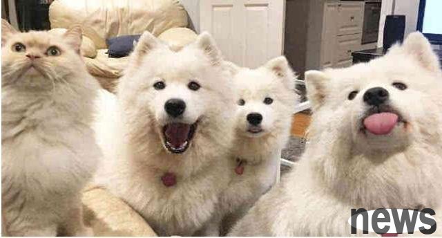 The netizen's home is full of five Samoyed animals of different sizes, often crowding together and looking at his master with innocent eyes. In addition, netizens also have a big white cat with a plump body and a lonely personality at home. However, the big white cat grew up with Samoyed and is very close friends. They often play together in harmony. The owner who loves taking photos has left them many wonderful photos.