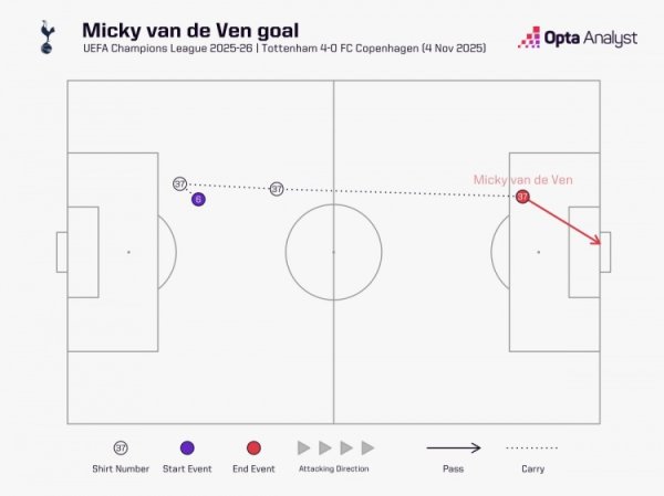 In the fourth round of the Champions League, Van der Ven scored a super one-stop goal to help Tottenham beat Copenhagen 4-0 at home.
