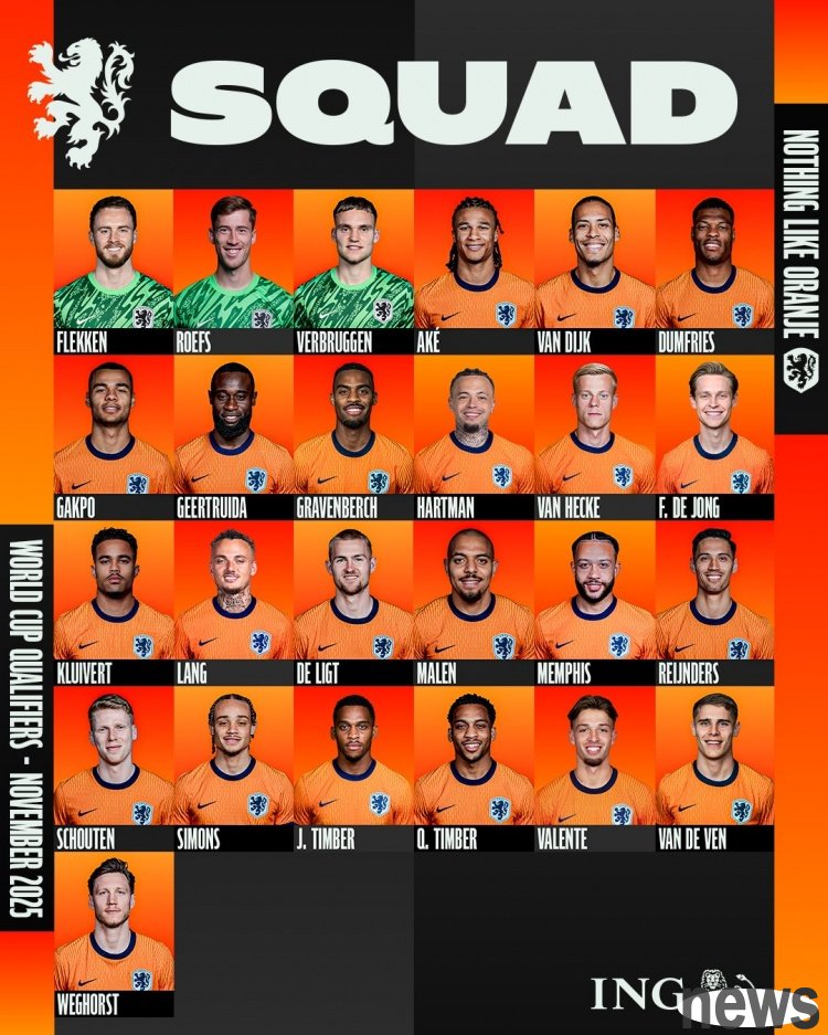 Defenders: Ake (Manchester City), Van Dijk ( Liverpool), Dumfries (Inter Milan), Heitlerida (Sunderland), Hartmann (Burnley), Van Heyck (Brighton), De Ligt (Manchester United), J-Timber (Arsenal), Van der Ven (Tottenham)