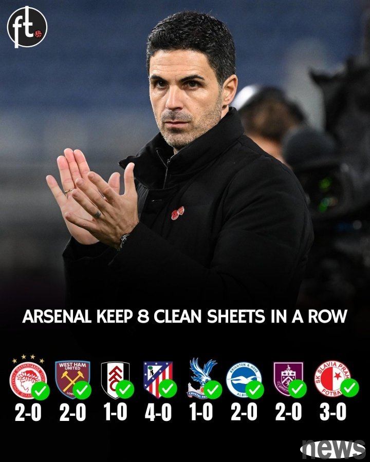 According to statistics, Arsenal tied the club's record for the longest number of clean sheets (8 games) set in 1903.